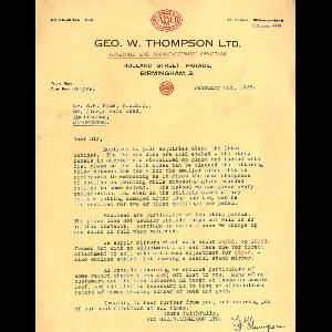 Letter sent from a firm of wholesale and manufacturing opticians to the ophthalmic optician S.H. Kime in response to his request for additional information on the Optax test chart cabinet, including details of lamps, strip panels, mirrors and record sheets. Typewritten on pre-printed yellow corporate stationery paper with the AWMO logo, GWT Weltax products logo and signature of F. H. Thompson.