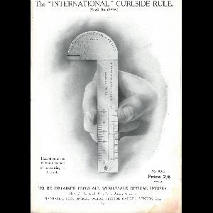 Advertisement for a manufacturer of ophthalmic instruments. Page 15 of an advertising supplement to an optical text book. Printed in black and white, with product photograph/drawing and price for an optician's rule for measuring spectacle curl sides.