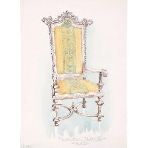 Original design drawing for the British Optical Association’s Masters' [sic] Chair, as provided to George M Hammer & Sons, The Strand (interior decorators and furniture designers). Pencil and watercolour on paper.