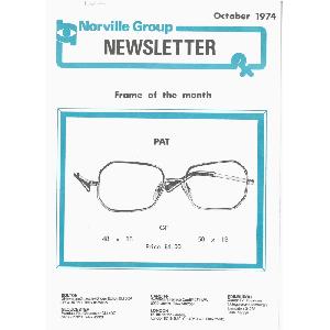 Newsletter of an optical manufacturing company. A5 portrait format, printed in black, white and light blue on 4 sides, folded. Features stories relating to new 'Pat' ladies frame, lens price increases and 10% surcharge on some orders, appointment of Alan Butterworth as representative for Birmingham, Warwickshire (and Ireland), ADO conference in Buxton, Amor frame price increases, list of of discontinued frames, mileage calculator, departure of Judith Jackson, OIC Lens Form Booklet 5th edition, Traders Credits. Front cover features a drawing of the 'Pat' frame.