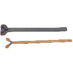 Long wooden rule with one rounded V-shaped end featuring a brass reinforced collar. Obverse features Age scale from 10 to 55, and a P. P. in Ds scale from 14 to 1.5. Reverse features three scales. Together with a black leather-covered wooden sheath case, with purple velvet lining, missing its flap lid but retaining the press stud fastener.