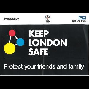 Double-side leaflet from early in the COVID-19 pandemic, A4 format, printed in colour, forming on the front a small window poster and on the reverse an information sheet on coronavirus and how to protect your friends and family.
