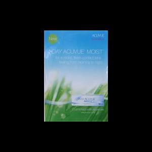 Large full-colour poster (A2 banner) on shiny paper, promoting a brand of daily disposable soft contact lenses. Features a soft-focus image of dew on the grass before a bright morning sky and a picture of the product packaging.
